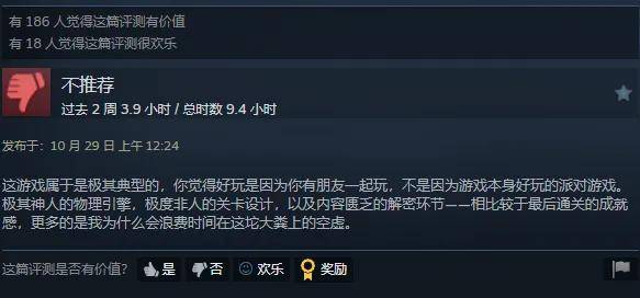 在Steam评论区中,有个玩家的发言说到了许多人的心坎里,它是那种典型的“你觉得好玩是因为有朋友和你在一起玩,而不是游戏本身的游戏性有多么出众”的产品,在笔者看来,这个评价并非贬损,它的许多问题源于制作本身,且对游戏体验影响非常明显。