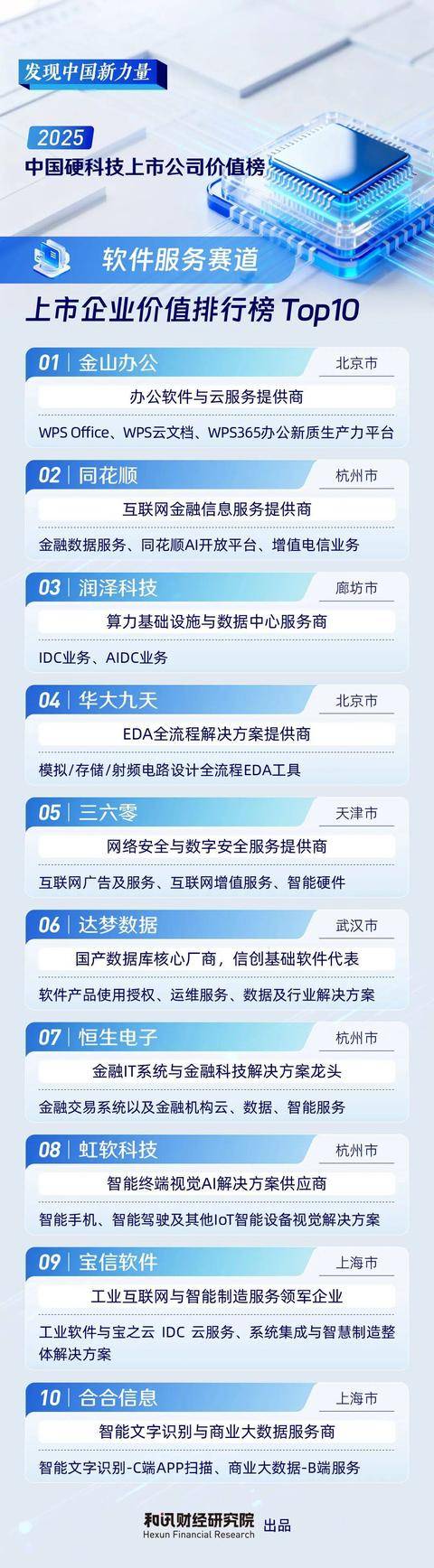 2025软件服务上市企业十强:金山办公、润泽、三六零(601360)...领跑