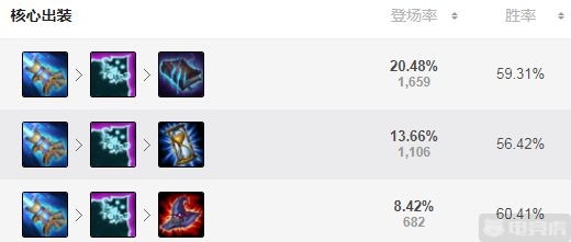 前期可以选择腐败药水出门增加对线续航以及对拼能力。第一个核心大件是冰枪,这件装备不仅有着减速效果,还有着不错的伤害输出,提升一定的作战能力。之后选择双生暗影来增加游走能力,让gank效率更高。后续的装备则是帽子、鬼书等提升硬核伤害的装备,中娅沙漏用来进场保命,让容错率更高。